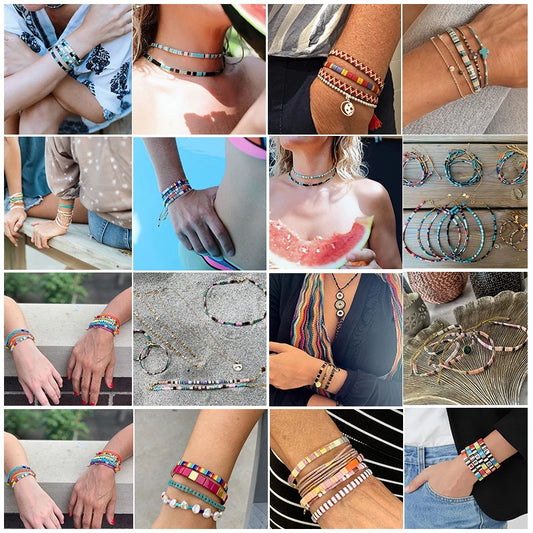 MOON GIRL Colorful Miyuki Bracelets for Women Trendy Charm Wrap Tila